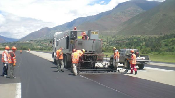 • توزيع الأسفلت على سطح الطريق في بيرو
