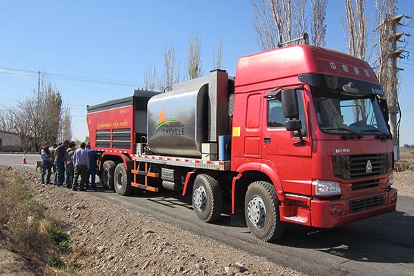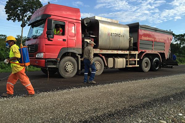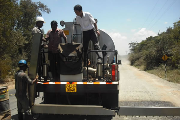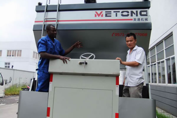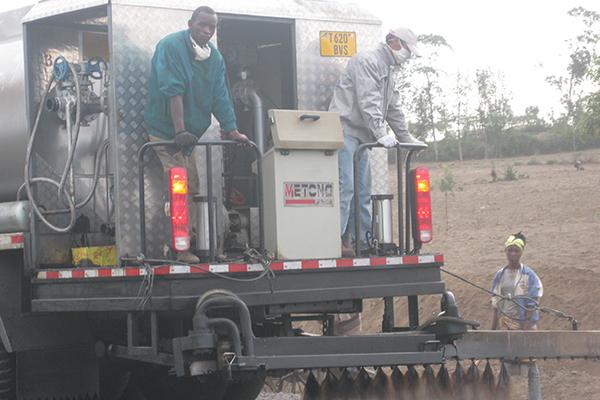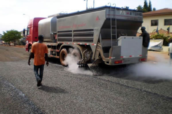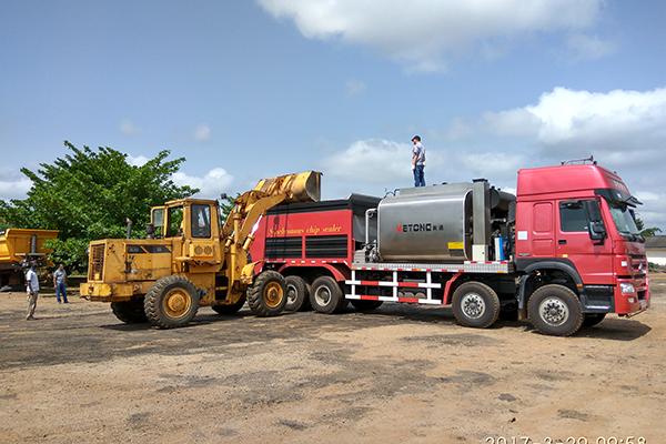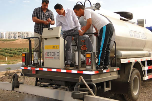 تدريب زبون من غانا على تشغيل معدة رش الأسفلت والحجارة