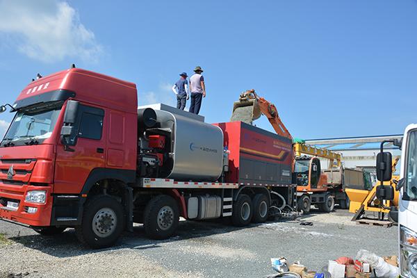 موقع العمل لمعدات صهر الأسفلت الهيدروليكية في أوغندا